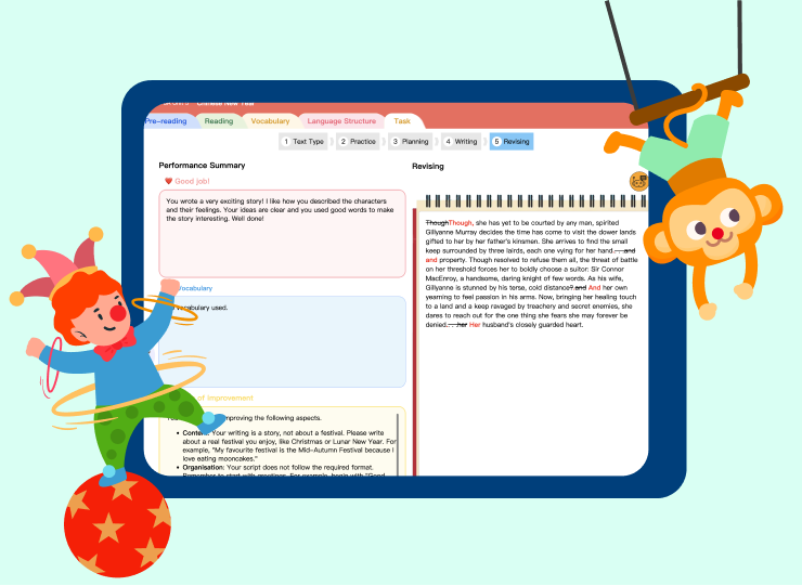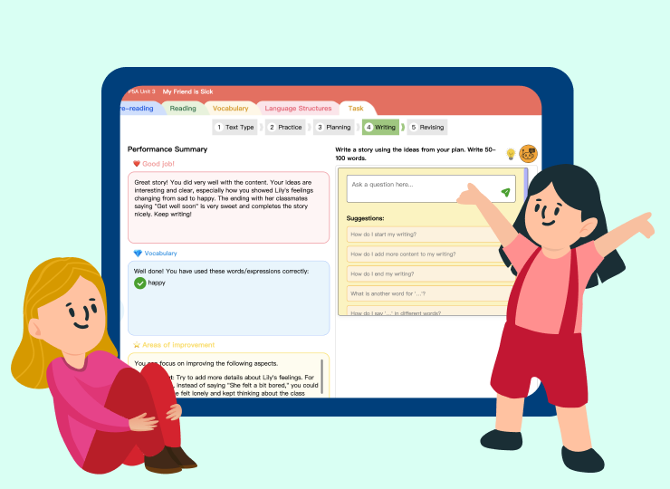 AI provides Grammar assistance and writing hints, and marks writing compositions, enabling students to study at their own pace.