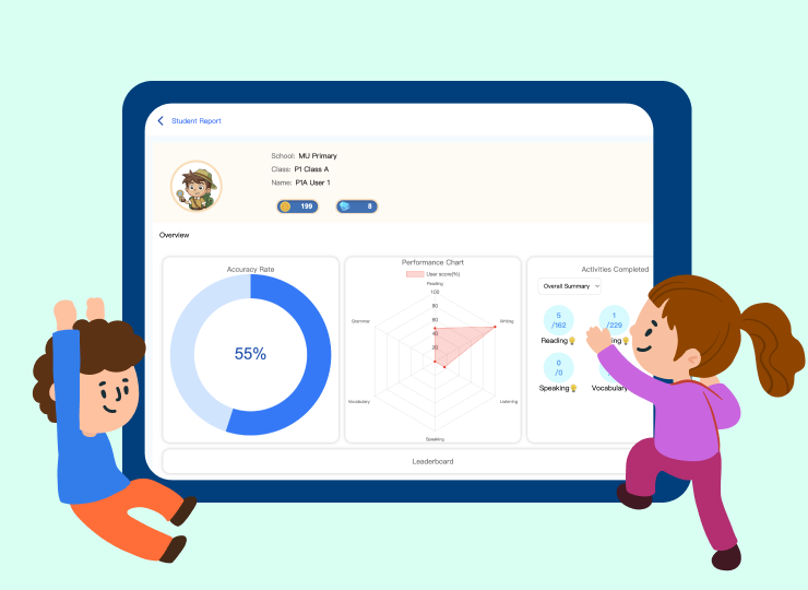 An immersive multimedia learning platform supports primary and secondary English learning