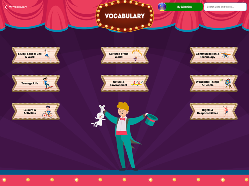 Vibrant vocabulary activities support the practice of vocabulary